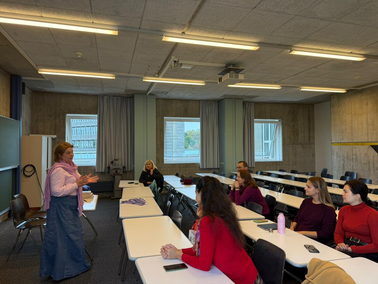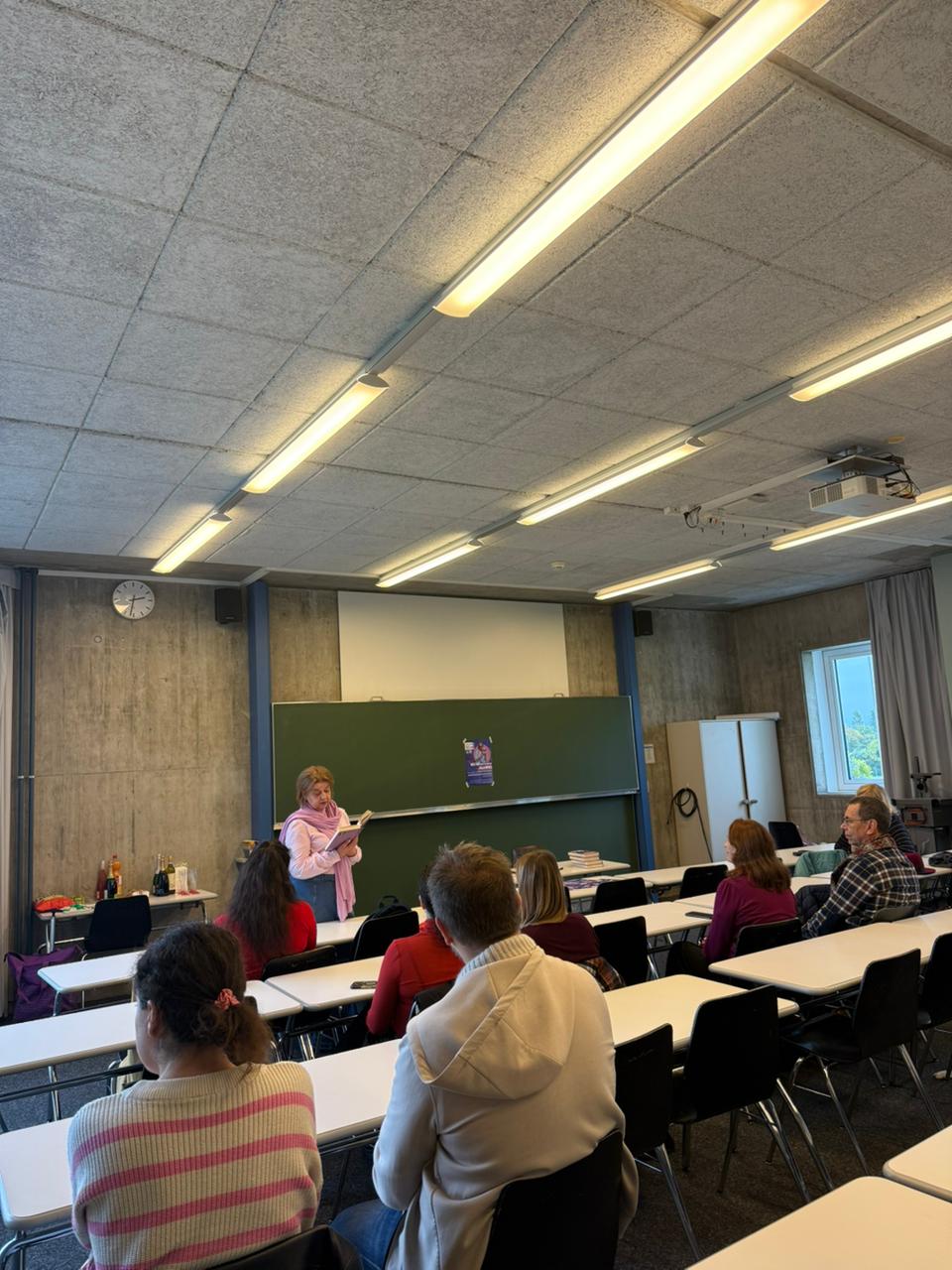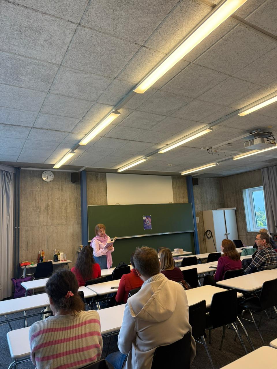 Друга зустріч відбулася 1 листопада в Українській школі в Женеві та була орієнтована на шкільну спільноту — учнів, батьків і педагогів. У більш камерному форматі авторка говорила про силу слова, пам’ять, мову та роль літератури у формуванні зв’язку з домом і культурою, особливо в умовах життя за кордоном.