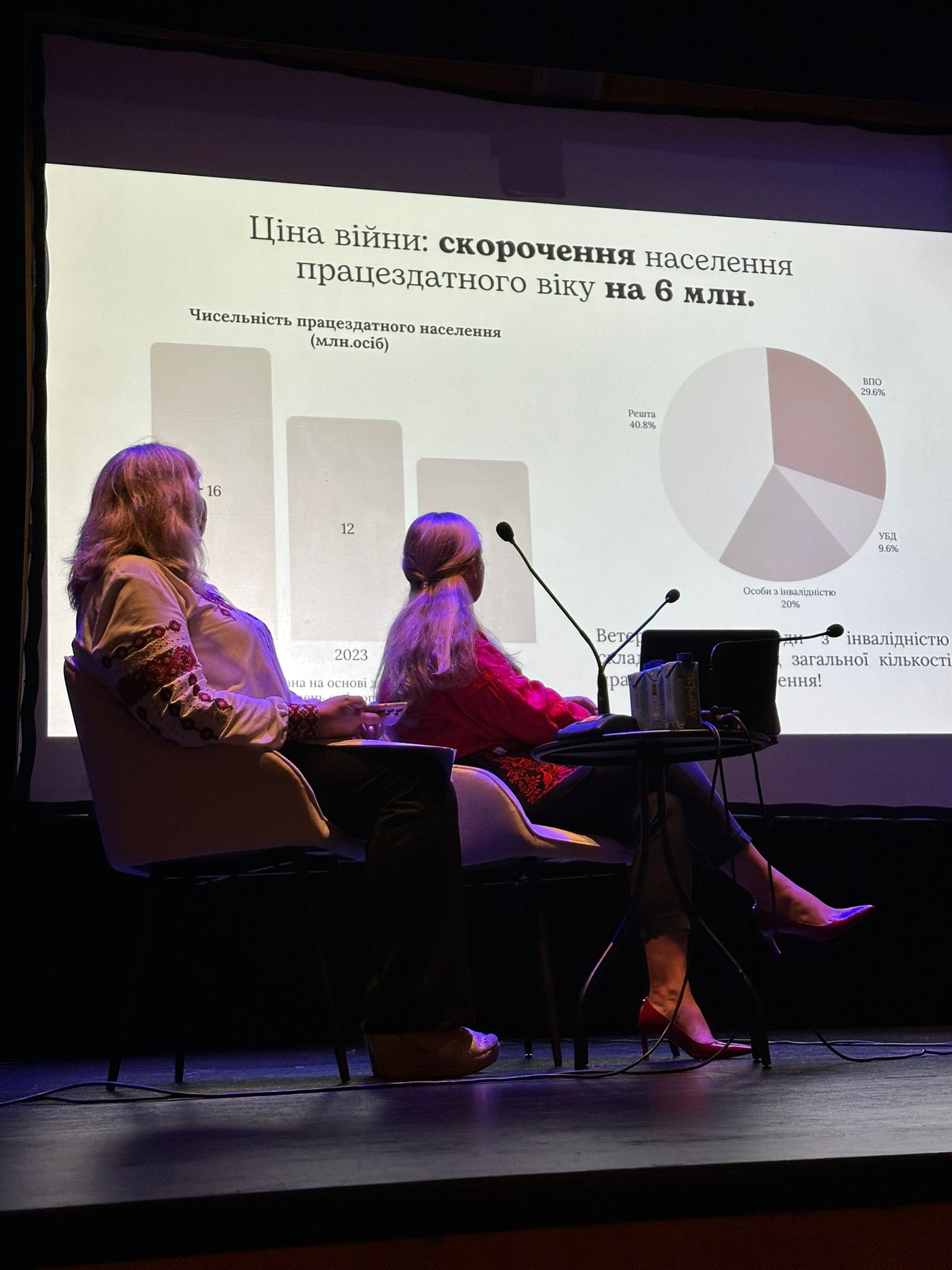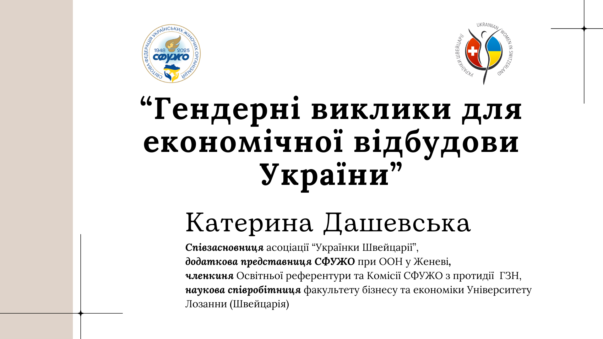 У своєму онлайн-виступі Катерина зосередилася на темі «Гендерні виклики для економічної відбудови України». Вона наголосила: сьогодні понад 70% українських біженців становлять жінки, і це – одна з найбільш освічених груп біженців у світі: 71% українок-біженок мають диплом магістра чи вищий рівень освіти. Проте реальність така, що більшість із них працює не за фахом, втрачає кваліфікацію та отримує зарплати на третину нижчі від місцевого населення.